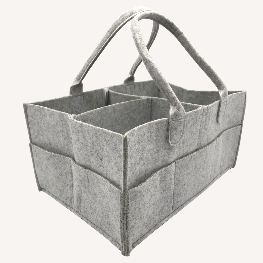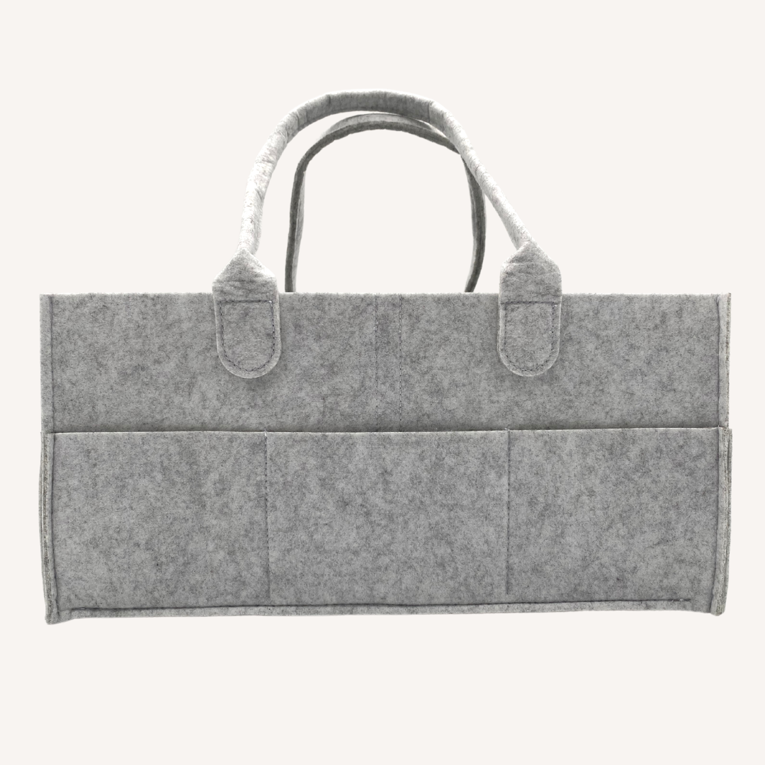 Designed with practicality in mind, the Premium Grey Felt Caddy comes equipped with sturdy handles, allowing you to move it with ease from room to room. Whether you're in the nursery, living room, or on-the-go, this caddy makes nappy changes stress-free and portable.