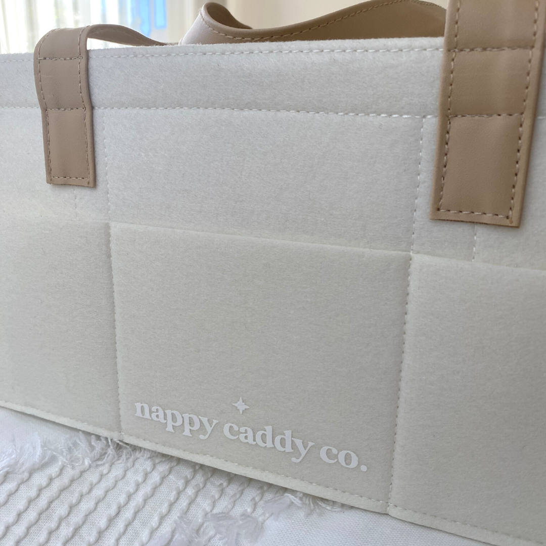 Upgrade your nursery organisation with our Deluxe Neutral Felt Caddy, crafted from textured, eco-friendly felt for a blend of style and sustainability. Now featuring our beautiful logo on the front, this improved version of our most popular caddy is designed to meet all your nappy changing and nursery organisation needs.