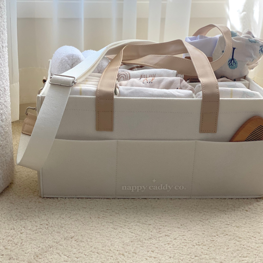 Transform nappy change chaos with the Deluxe Neutral Felt Caddy - it's the perfect combination of functionality, style, and eco-consciousness.
