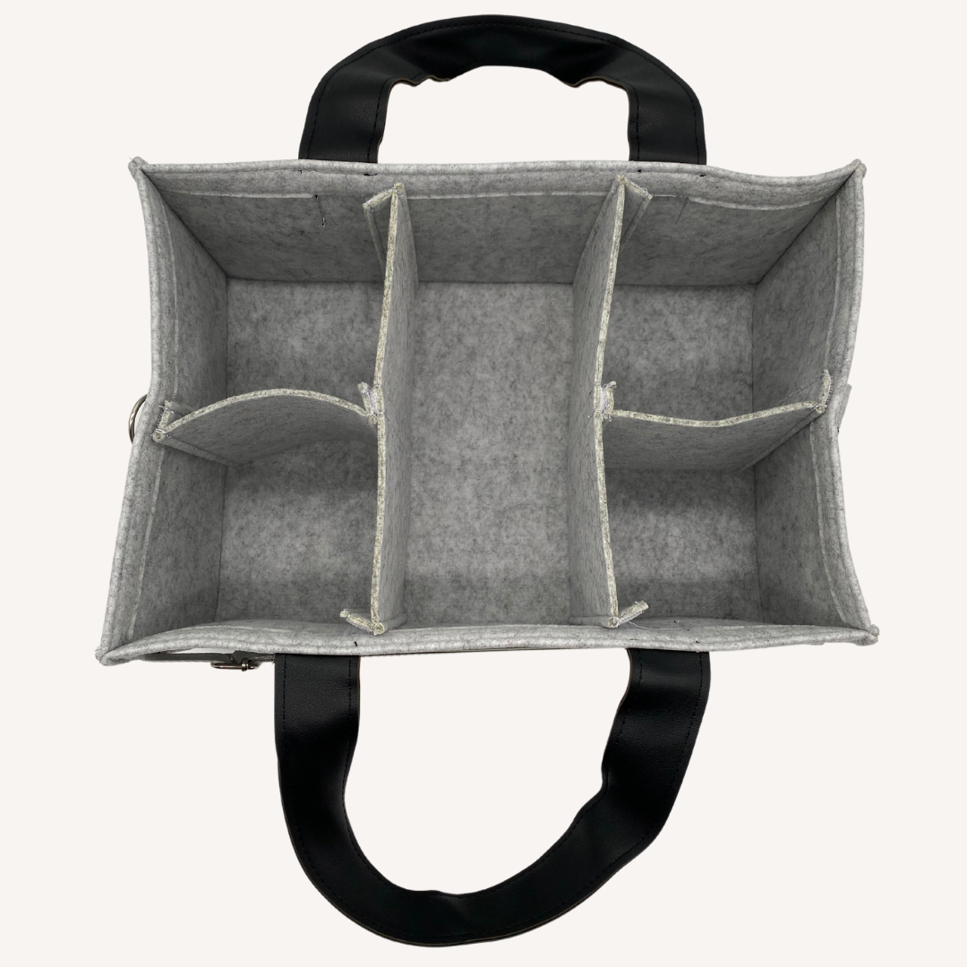 Designed for modern parents on-the-go, the Deluxe Grey Felt Caddy features an adjustable shoulder strap for easy transportation. Whether you're moving from room to room or heading out for the day, take your essentials with you effortlessly.